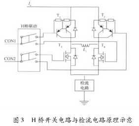 H橋開關電路主要由H橋路及其驅動電路組成,用于實現(xiàn)對勵磁線圈進行方波勵磁。原理示意圖如圖3所示。