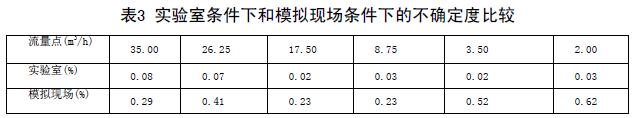 實驗室條件下和模擬現(xiàn)場條件下的不確定度比較(表3)兩次結果可以看出,兩次實驗各個流量點的不確定度差距非常大??梢?,濃硫酸電磁流量計對安裝條件還是比較苛刻的。