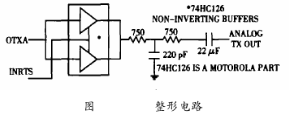 如圖4所示,緩沖器74HC126的作用是使方波的上升沿和下降沿趨于平緩,使信號滿足HART物理層規(guī)范所要求的信號波形上升沿和下沿的時要求,因為較平緩的上升沿和下降沿時間可以降低與其它網(wǎng)絡(luò)間的串擾。
