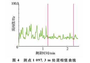 T-××-××1井是大慶油田采油五廠1口水驅(qū)產(chǎn)出井,采用阻抗式含水率計在該井進行了測試。圖3、圖4分別為測點深度1097.3m測量的流量及混相值曲線圖。2min的采樣時間內(nèi),流量及混相值曲線波動劇烈,明顯受井下產(chǎn)氣影響,進行平均值計算時只能取后半段較平穩(wěn)的數(shù)據(jù),因此,測試時需延長測量時間。錄取不同范圍數(shù)值時流量及含水率測量差值較大,流量平穩(wěn)段為14.81m3/d,高值時達到23.52m3/d;取不同測量段的混相值時測量含水率*大相差12%。重復測量得到了相同的測量結果。由此可見,氣體對流量及含水率測量產(chǎn)生了非常大的測量誤差。