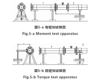 對(duì)于高壓機(jī)油流量計(jì)來(lái)說(shuō),還應(yīng)當(dāng)詳細(xì)說(shuō)明流量計(jì)所需求的彎曲與扭力力矩的保護(hù)水平。此數(shù)據(jù)是通過(guò)試驗(yàn)直接獲得,彎矩測(cè)試裝置如圖5-a 所示,直管段1 連接氣體流量標(biāo)準(zhǔn)裝置,在直管段2 預(yù)先確定的力臂L 位置附加垂直方向的力F 而形成彎矩M;扭矩測(cè)試裝置如圖5-b 所示,直管段1 連接氣體流量標(biāo)準(zhǔn)裝置,在直管段2 側(cè)面預(yù)先確定的力臂L 位置附加垂直方向的力F 而形成扭矩T。而彎矩與扭矩均是作用于流量計(jì)入口與出口法蘭處。由于此項(xiàng)測(cè)試主要針對(duì)流量計(jì)強(qiáng)度的校核,為了更有說(shuō)服力、提高可靠性,故將鋁合金殼體的中低壓渦輪流量計(jì)DN80-G100用于此次測(cè)試。而整個(gè)測(cè)試過(guò)程是將砝碼F 按EN12261 表10 中要求1 倍、2 倍直至做到4 倍(即力矩為3 040 N·m),未發(fā)現(xiàn)流量計(jì)殼體有任何異常變化。而測(cè)試結(jié)果表明在施加砝碼F 之前、過(guò)后得到的指示誤差與施加砝碼F 之前的指示誤差未有明顯變化。