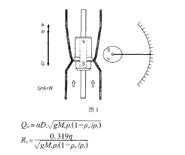 如圖1所示,相對(duì)應(yīng)測(cè)量介質(zhì)的某**量,磁性浮子在測(cè)量管中對(duì)應(yīng)一個(gè)浮子位置,這個(gè)浮子位置通過指示器中的經(jīng)過精密充磁的磁禍合系統(tǒng)帶動(dòng)指針,由刻度盤和指針讀出相應(yīng)的流量值。