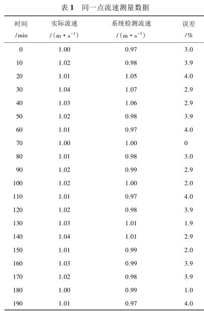 由表 2 測(cè)量數(shù)據(jù)可知,系統(tǒng)在測(cè)量低流速液體時(shí)(流速小于 1 m/s)誤差較大,達(dá)到 5%,當(dāng)待測(cè)液體的流速增大時(shí)(大于 1.4 m/s),誤差逐漸減小,基本維持在 3%以內(nèi)。由此可見系統(tǒng)具有較高的檢測(cè)精度,尤其是當(dāng)管道中的液體流速較高時(shí),系統(tǒng)的檢測(cè)誤差不超過(guò) 3%,達(dá)到了設(shè)計(jì)預(yù)期。