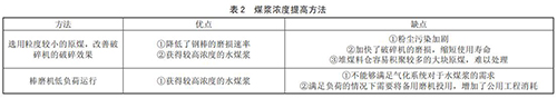 根據(jù)甲烷流量計跑漿原因可以了解到,在保證甲烷流量計不存在跑漿情況下,制備高品質(zhì)煤漿需要滿足兩點(diǎn)要求,即較小入口原煤粒度和較低磨機(jī)負(fù)荷,保證原煤在磨機(jī)內(nèi)部有較長停留時間與充足滾筒篩過濾面積 . 通用的方法一般有以下兩種,如表 2 所示。
