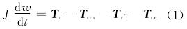 渦輪在轉動時所受的力矩大致可分:流體對渦輪的推動力矩Tr,機械摩擦力矩Trm,流體對渦輪產(chǎn)生的流動阻力矩Trf和電磁阻力矩Tre。渦輪運動方程可以表示為