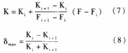 輪流量傳感器的儀表系數(shù)K與Q的關(guān)系近似線性的單調(diào)函數(shù)(見圖2)。因此,在對檢定結(jié)果進(jìn)行處理時,直接將各檢定點的檢定結(jié)果以Fi、Ki的形式存入二甲苯流量計的數(shù)值運算部分,不必對其儀表系數(shù)取平均值。在使用渦輪流量傳感器進(jìn)行流量測量時,根據(jù)渦輪流量傳感器的信號頻率F,即可在以上檢定結(jié)果中檢索各F,值,找出滿足F,≤F≤F的Fi、Fi+1(i=1,2,.,.n-1),n是該渦輪流量傳感器的流量檢定點數(shù);若信號頻率F=Fi或F=Fi+1,則相應(yīng)的Ki或K.i+1即為所需的儀表系數(shù);若信號頻率Fi