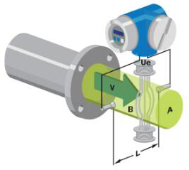管道式電磁流量計使用法拉*電磁感應(yīng)定律進行流量測量。法拉*定律指出,每當(dāng)長度為“ l”的導(dǎo)體以垂直于磁場“B”的速度“v”運動時,就會在相互垂直的方向上感應(yīng)出電動勢“e”,其方向為