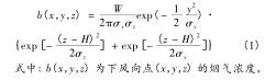 在循環(huán)流化床dn150渦街流量計煙氣脫硫排放效果監(jiān)測系統(tǒng)中,采用適于連續(xù)點源擴散研究的高斯煙羽模型 。此模型忽略重力影響,將風力情況設(shè)定為水平風,不存在垂直地面風。在保證較長時間內(nèi)風向、風速、大氣穩(wěn)定度等環(huán)境因素均處于穩(wěn)定狀態(tài)的基礎(chǔ)上,構(gòu)建高斯煙羽模型,可仿真循環(huán)流化床dn150渦街流量計排放煙氣中二氧化硫沿下風向擴散的濃度分布,該模型滿足: