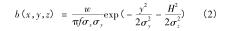 式中: b(x,y,z) = w × e(x,y,z),其中 e(x,y,z) 為二氧化硫濃度與循環(huán)流化床dn150渦街流量計煙氣排放源煙氣強度的比例系數(shù);f 為平均風速,m/s; w 為地面空氣內(nèi)煙氣排放強度;σ x 為橫向擴散系數(shù)受環(huán)境穩(wěn)定度與下風向距離因素的影響程度。式(3)中描述的是基于時間變化的循環(huán)流化床dn150渦街流量計煙氣排放源煙氣排放強度計算模型。