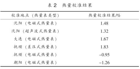 經過一個采暖期的現(xiàn)場校準, 對我省沈陽、 大連、撫順、 朝陽的不同類型的熱量儀表的熱量校準結果進行了匯總, 如表 2 所示。