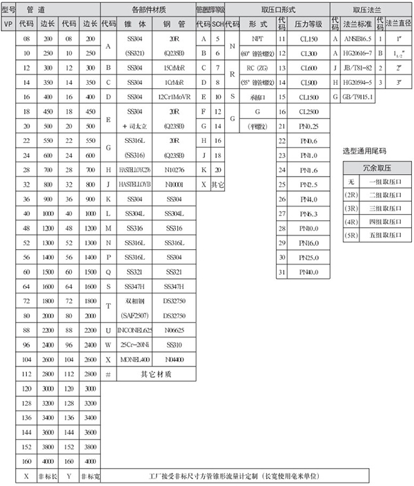 3、方管錐形流量計(VP)選型