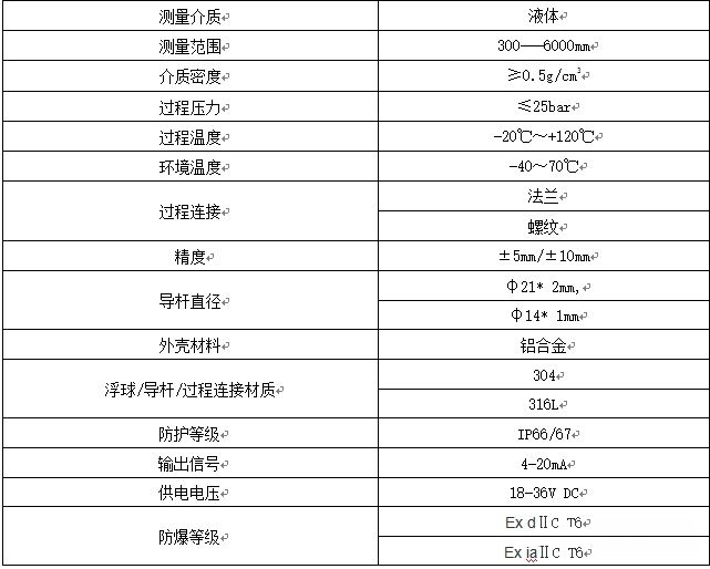 Float-11浮球式液位計(jì)技術(shù)參數(shù)表