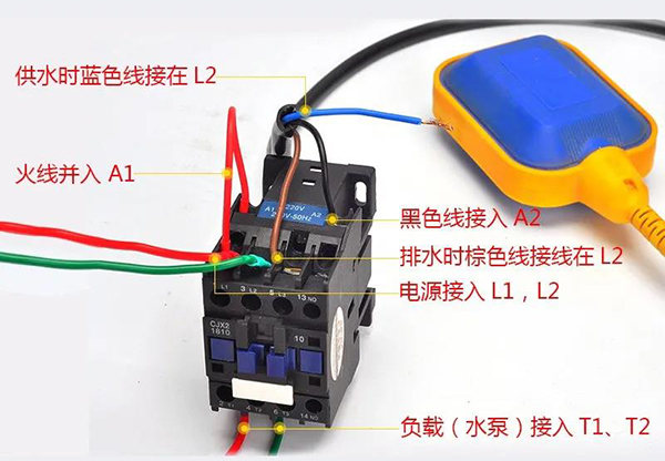 使用藍色和棕色的電線:浮球在上液位時,接點是不通的狀態(tài)。浮球在下液位時,接點是接通的狀態(tài)。