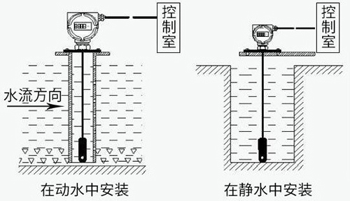 纜式靜壓液位計(jì)(靜壓式水位計(jì))通常投入直徑大于水位計(jì)直徑的的PVC管、鋼管,管道固定在水中,不同高度打若干小孔,以便水通暢進(jìn)入管內(nèi)?;蛘咴诘撞考友b阻尼裝置,以過濾泥沙和消除動(dòng)態(tài)壓力和波浪對(duì)測(cè)量的影響。