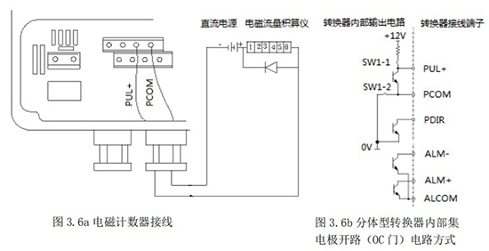 1.1.5 頻率(脈沖)、上下限報警、流向標示等輸出均為集電極開路的電平輸出信號。