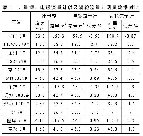 表中 12 口固井進(jìn)行泥漿流量計測量應(yīng)用結(jié)果可以看出,儀表計量誤差小于 1%,且在流速 2.0 m/s以下,測試的流量越少其可能帶來的誤差影響就越高。當(dāng)測試流量處在 1.0 m/s 上下時,計量精度已經(jīng)降到了 3%。由此可以判斷,不同固井泥漿流量計的使用誤差是由于零點漂移引起的,這就與室內(nèi)試驗的清水標(biāo)定結(jié)果相一致。而 DN50 測量管的使用,則應(yīng)采用雙頻矩形波作為實際作用的勵磁信號。這樣一來,就能有效避免或防止固井泥漿的流動噪聲或是作業(yè)現(xiàn)場的機械振動問題,對計量泥漿流量的精度早晨影響。