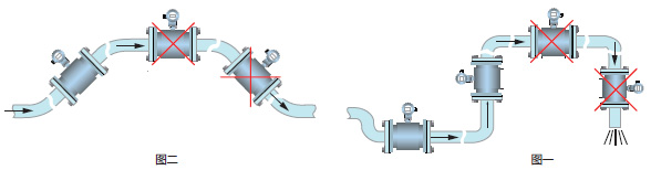 1.5 液體電磁流量計安裝場所應(yīng)避免有磁場及強振動源,如管道振動大,在流量計兩邊應(yīng)有固定管道的支座。