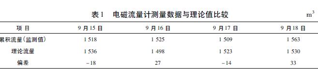 生活污水流量計價格與V錐流量計都適用于環(huán)境較惡劣的場合。在測量精度上,V錐流量計要比生活污水流量計價格高,而且安裝更靈活,對上、下游直管段的要求很短,但V錐流量計要比生活污水流量計價格昂貴得多。生活污水流量計價格的測量精度雖不及V錐流量計,但在此應(yīng)用中完全可以滿足要求,而且運行穩(wěn)定性和流量數(shù)據(jù)準(zhǔn)確度也很好。表1是使用生活污水流量計價格對園區(qū)某個企業(yè)監(jiān)測點連續(xù)4天的累積流量監(jiān)測數(shù)據(jù)與理論流量的對比。