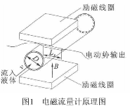 如圖1所示,某一時刻由一對勵某一時刻由一對勵磁線圈產(chǎn)生的磁感磁線圈產(chǎn)生的磁感應(yīng)強度B,方向向上,流入液體的速上,流入液體的速度為v,管的直徑管為D,兩極的距離為Le,兩極間電動勢,兩極間電動勢ε正比于磁感應(yīng)強度正比于磁感應(yīng)強度B、流速v和兩極間的距離Le,即: