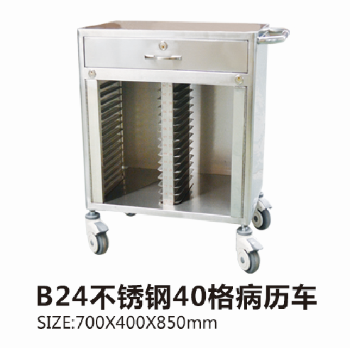 • 產(chǎn)品名稱: B24不銹鋼40格病歷車